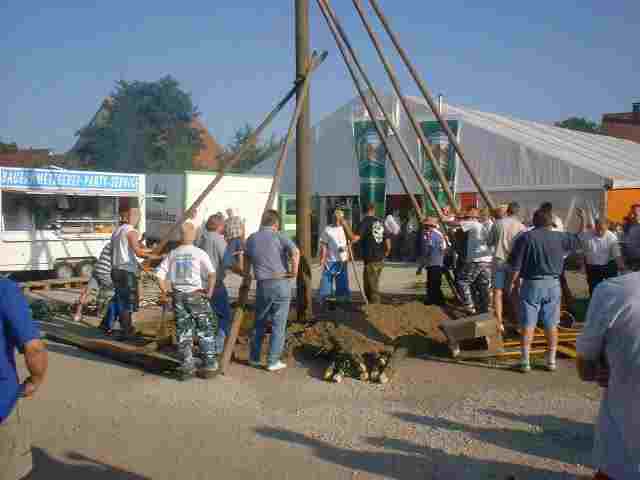 Dann kamen die Kerwa-Boum und begannen den Baum aufzustellen